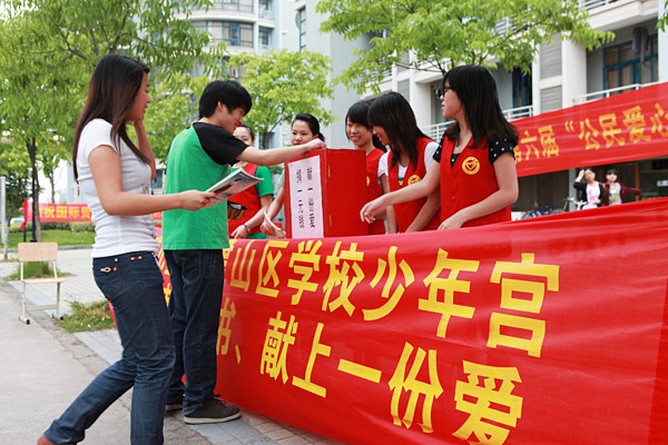 捐助一元钱、捐献一本书、献上一份爱……为了给外来务工人员子女和贫困山区学校学生送上节日的问候,让他们欢度一个快乐的“六一”儿童节,浙江经贸职业技术学院党校学员近日在学院生活区内设立捐赠点,过往的师生纷纷驻足奉献爱心。