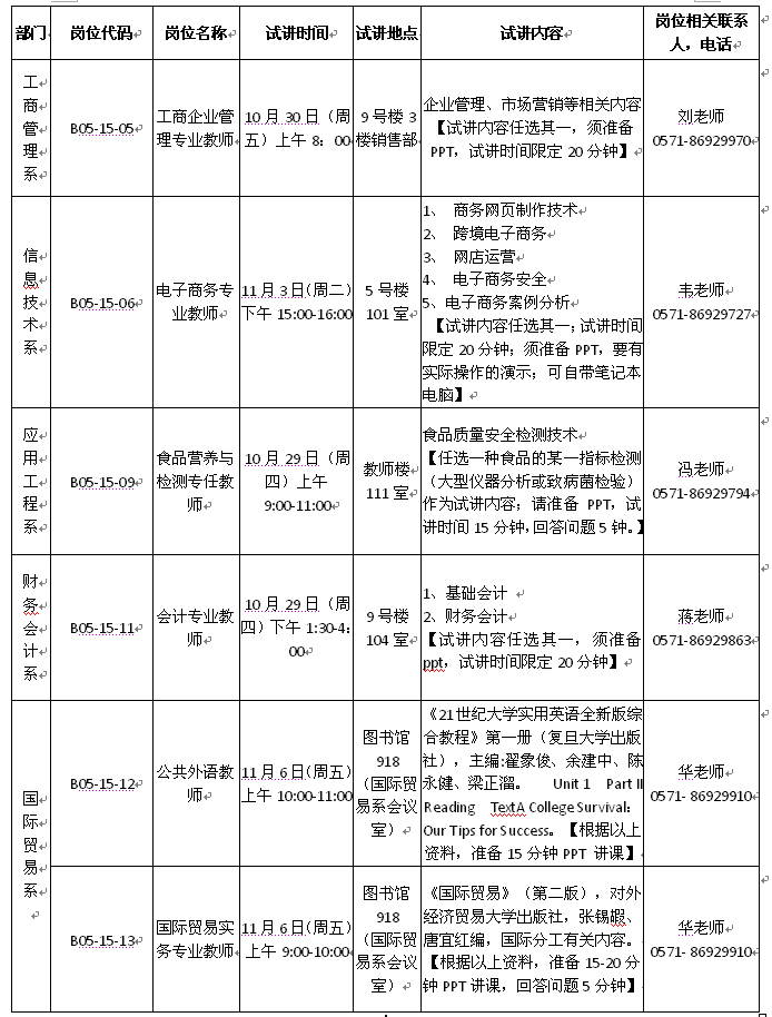人事处联系电话:0571-86929819、86929817