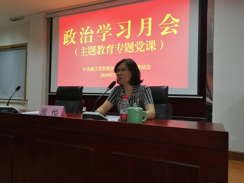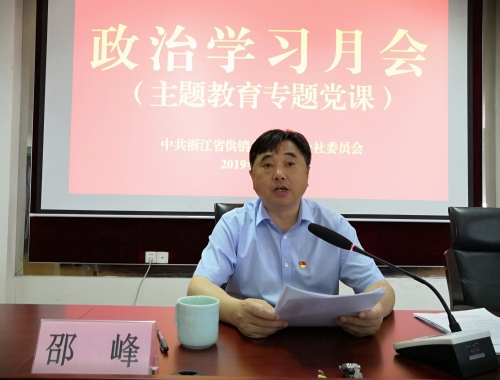 7月11日下午,省供销社党委召开党员干部政治学习月会,社党委书记邵峰上主题教育专题党课。省委第十一巡回指导组组长李剑飞及指导组成员到会指导,社机关全体党员干部,浙江经贸职业技术学院、浙江农业商贸职业学院党委主要领导,兴合集团总部全体党员干部和一类成员企业党委委员、班子成员,其他成员企业党组织书记共100余人参加会议。