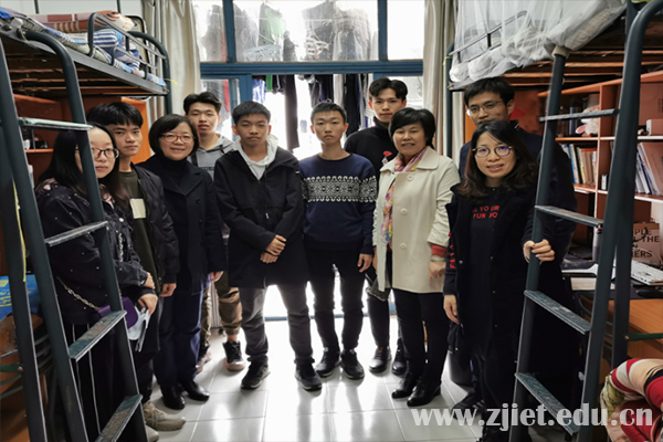 为深入贯彻落实“不忘初心 牢记使命”主题教育,11月26日中午,副校长蒋丽君在信息技术系班子成员、辅导员和班主任的陪同下走访了55栋信息技术系学生寝室,详细了解了同学们的寝室环境及课余学习生活等情况。