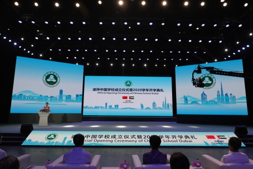 9月1日下午,迪拜中国学校成立仪式暨2020学年开学典礼在杭州和迪拜两地通过视频连线同步进行。教育部副部长田学军发表视频致辞。教育部国际合作与交流司副司长方军,省教育厅副厅长于永明,省外办副主任陈江风,杭州市委副书记佟桂莉等出席杭州会场活动并一起按下迪拜中国学校的启动按钮。