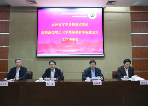 根据省教育厅党委统一部署,10月19日下午,省教育厅党委提级巡察组巡察浙江理工大学继续教育学院党总支工作动员会召开。会上,省教育厅党委委员、副厅长、厅党委巡察工作领导小组副组长陈峰作了动员讲话,提级巡察组组长王登先介绍了巡察工作安排,浙江理工大学党委书记吴锋民和继续教育学院党总支书记姚春序分别作了表态发言。
