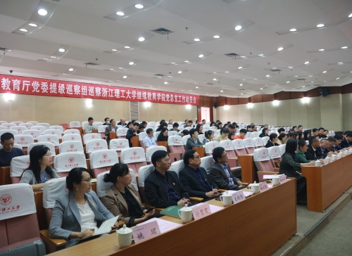 省教育厅党委巡察办负责人及提级巡察组全体人员,浙江理工大学党委班子成员、各职能部处及二级学院主要负责人、继续教育学院班子成员出席会议,继续教育学院全体教职员工及近五年调离、退休的班子成员列席会议。