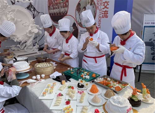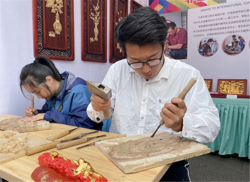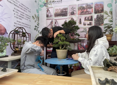 当天还举行了浙江省职业教育成果展,宁波城市职业技术学院和宁波三所中职学校的学生在技能大师的指导下展示了基于VR视界的计算机组装、插花、盆景制作、面点制作等技艺。
