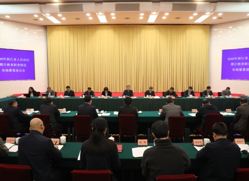 根据有关工作安排,国务院教育督导委员会近期将对浙江等6个省级人民政府履行教育职责工作开展实地督查。11月14日上午,2020年浙江省人民政府履行教育职责情况实地督查进点会在省人民大会堂召开,国务院教育督导委员会督查组与省政府有关领导、省级相关部门负责人进行工作沟通和动员部署。