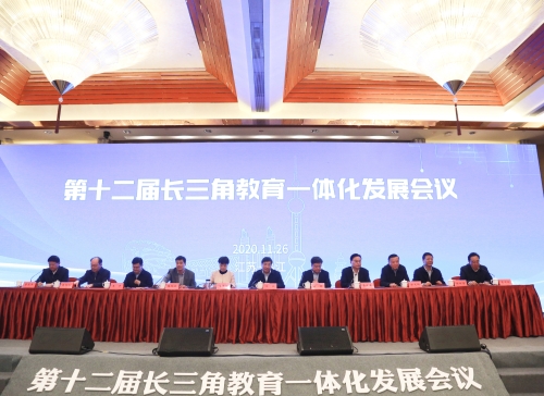 11月26日,第十二届长三角教育一体化发展会议在江苏省苏州市吴江区召开,沪苏浙皖一市三省再度聚首,面向“十四五”,共同谋划更高水平、更高质量的长三角教育一体化新发展。上海市副市长陈群、江苏省副省长马欣、浙江省政府副秘书长蔡晓春、安徽省政府副省长王翠凤出席会议并作主旨讲话。教育部发展规划司副司长楼旭庆出席会议并讲话。省教育厅党委书记、厅长陈根芳,省教育厅专职副总督学舒培冬率省教育厅相关处室及直属单位、部分地方教育局和高校负责人与会。