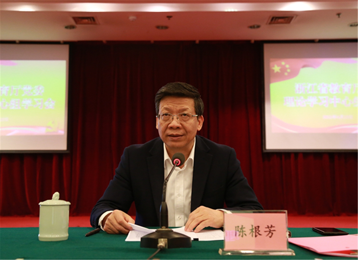 4月15日,省教育厅召开党委理论学习中心组(扩大)学习会,集中学习《习近平在浙江》采访实录。省教育厅党委书记、厅长陈根芳主持会议并作中心发言。