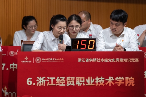 比赛现场,选手们斗志昂扬、积极作答,党史党建知识储备丰富,团队协作能力强。经过“扬帆起航”个人必答题、“劈波斩浪”团队必答题、“激流勇进”团队抢答题、“勇立潮头”团队风险题和“巅峰对决”决胜抢答题五个环节的激烈角逐,浙江经贸职业技术学院代表队摘得桂冠。浙江农业商贸职业学院、浙江新大集团有限公司、中国茶叶拍卖交易服务有限公司获二等奖。浙江福士达集团有限公司、浙江特产集团有限公司、中华全国供销合作总社杭州茶叶研究院、浙江省兴合集团资产经营有限公司获三等奖。省社机关、浙农控股集团有限公司获优秀组织奖。