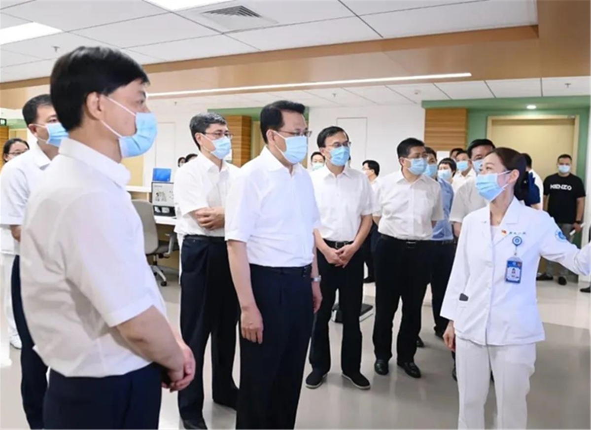 在浙江中医药大学,袁家军考察中医药博物馆、中医药科学院智慧科研控制系统和科学家科技创新平台,参观“牢记嘱托 砥砺奋进”——贯彻落实习近平同志重要指示精神建设一流中医药大学回顾展,详细了解学校发展、文化传承、增强民族自信与文化自信情况。在浙江大学医学院附属第一医院总部,袁家军考察门诊智能药房、5G急救智慧中心、数字化病房等,详细了解数字化、全自动发药系统方便患者取药,危重病人急救一体化生命周期支持系统、数字后勤管理系统发挥作用等情况。他要求医院坚持以患者为中心,以数字化手段持续赋能医疗服务,依托物联网、大数据等技术手段,不断改善医疗服务、提升患者就医体验。