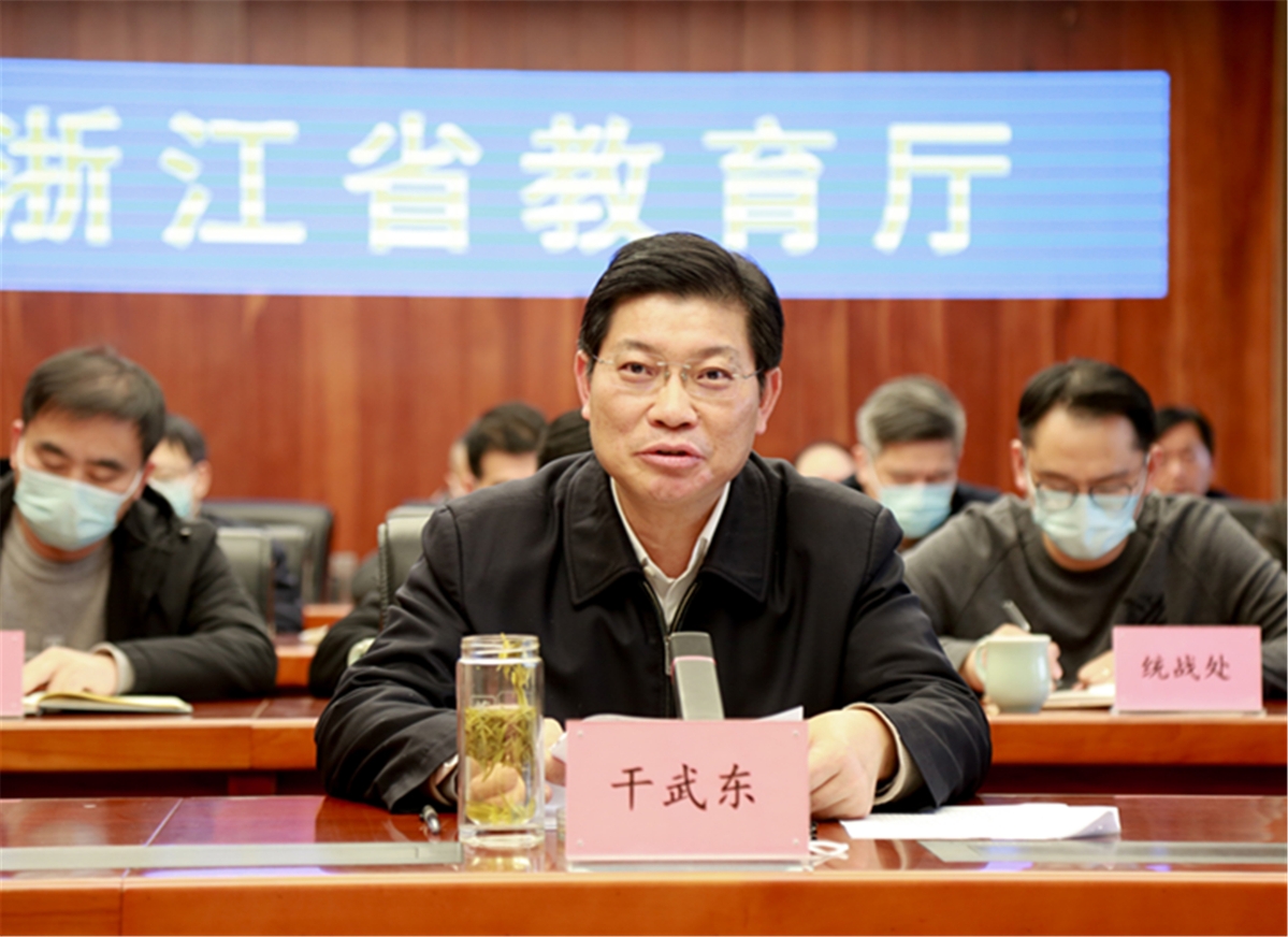 干武东强调,新的一年将迎来党的二十大、北京冬奥会、杭州亚运会,全省教育系统要精准发力、狠抓落实,全面加强校园安全稳定工作,确保校园安全和谐稳定。他要求,全省教育系统安全稳定意识要再提高,把全省教育系统全体干部、师生员工的思想和行动统一到习近平总书记总体国家安全观上来;安全稳定责任要再压实,切实落实教育系统全员安全责任,推动落实党委政府“属地管理”责任;安全稳定隐患要再排查,突出隐患风险排查,强化隐患风险治理,充分利用“浙江省校园安全数字化管理平台”,确保安全稳定风险隐患动态清零;安全稳定措施要再抓实,强化阵地意识,突出工作重点,加强联防联控,抓好应急处置,全面提升师生安全意识和安全管理干部素质能力;数字转型要再推进,积极探索“智慧安防”“智慧思政”建设,推进人工智能、物联网等新技术的应用,构建数字化校园安全稳定防范管理体系。