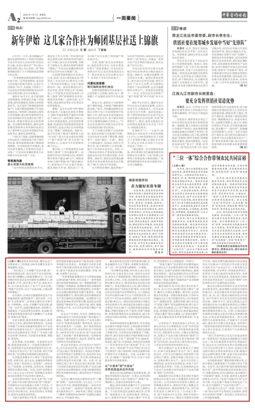 1月7日,《中华合作时报》第1版刊出省供销社党委书记、理事会主任邵峰署名文章《“三位一体”综合合作带领农民共同富裕》。并配发浙江持续深化“三位一体”改革长篇报道《打造生产、供销、信用协同服务的“公共汽车”》。