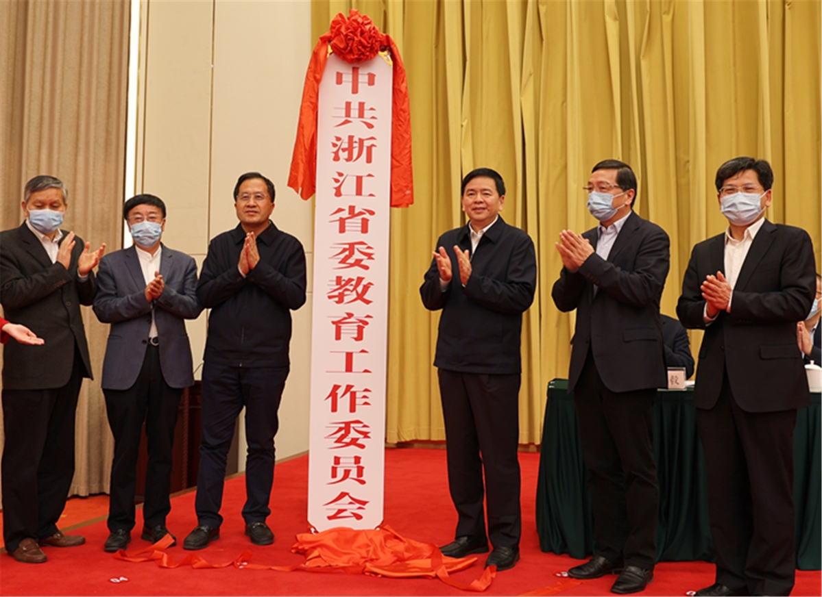 4月8日,省委教育工委成立暨全省教育系统党的建设工作会议在杭州举行。省委副书记、省委教育工作委员会书记黄建发为“中共浙江省委教育工作委员会”揭牌并讲话。
