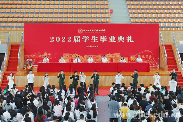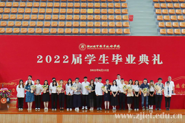 6月10日上午9时,浙江经贸职业技术学院2022届学生毕业典礼在体育馆隆重举行。学校领导劳赐铭、陈德泉、许宝峰、张红、蒋丽君、何学军、董伟统出席典礼,全体中层干部、辅导员、毕业班班主任和毕业生代表参加典礼。典礼由党委副书记许宝峰主持。