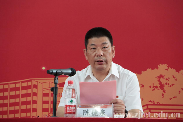 校长陈德泉在典礼上发表深情的讲话。他向全体毕业生寄予了殷切期望和深情祝福,希望全体毕业生坚定理想,做一个迎难而上的勇敢者;脚踏实地,做一个矢志不渝的奋斗者;热爱生活,做一个懂得感恩的豁达者,在时代大潮中扬帆起航,在人生旅途上奋翼高飞,谱写于国有功、于校有荣、于己有彩的动人乐章!