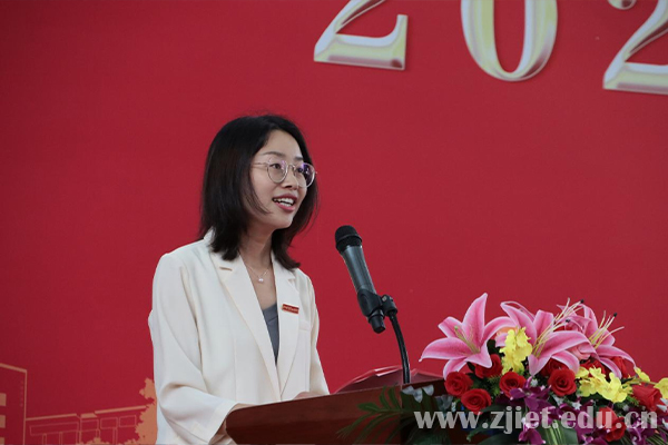 马克思主义学院胡小爱老师作为教师代表发言,她回忆起与同学们同心抗疫、共同成长的点滴故事,勉励同学们不忘初心、终身学习、勇挑重担、永不言败,让“奋斗”成为最生动的青春注解。