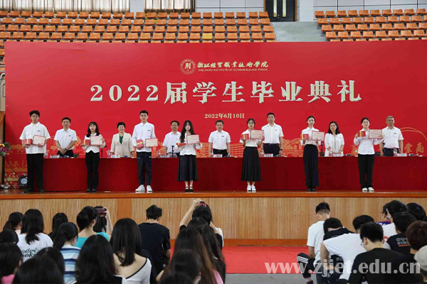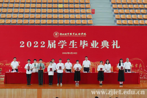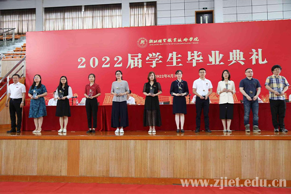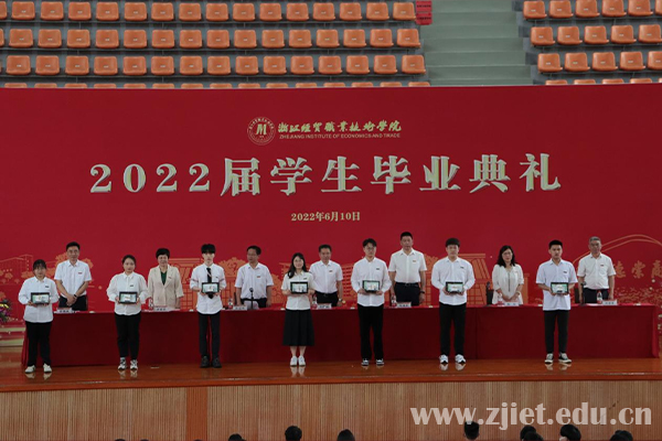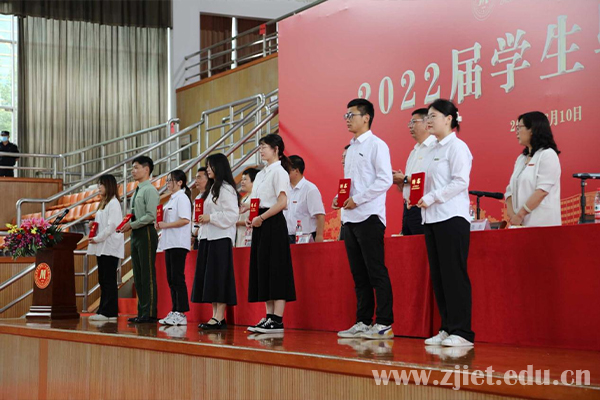 副校长蒋丽君宣读《关于表彰2022届优秀毕业生的决定》。学校领导为浙江省优秀毕业生代表、学校优秀毕业生代表颁发荣誉证书,并为毕业生代表颁发毕业证书、赠送校友卡和《毕业生廉洁从业教育手册》等毕业专属纪念品,勉励全体毕业生清廉从业、奋楫笃行,在青春赛道上争取更好成绩!