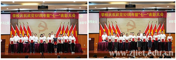 党委副书记、校长陈德泉宣读了省直机关先锋支部、省供销社和学校党委“两优一先”表彰文件。党委委员、副校长蒋丽君宣读了2021年度党建思政论文和学习强国·学习之星表彰文件。