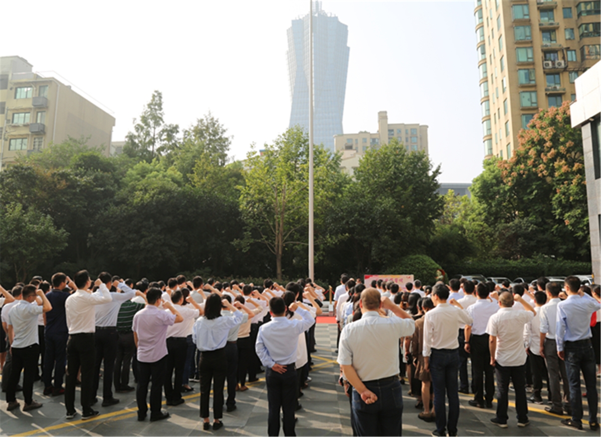 上午8:30,升旗仪式正式开始。旗手们昂首挺胸,迈着铿锵有力的步伐,护送国旗行进至升旗台。鲜艳的五星红旗在雄壮的国歌声中冉冉升起,全体人员精神饱满、整齐列队,向国旗行注目礼,齐声高唱国歌,表达对伟大祖国的深挚热爱和美好祝福。