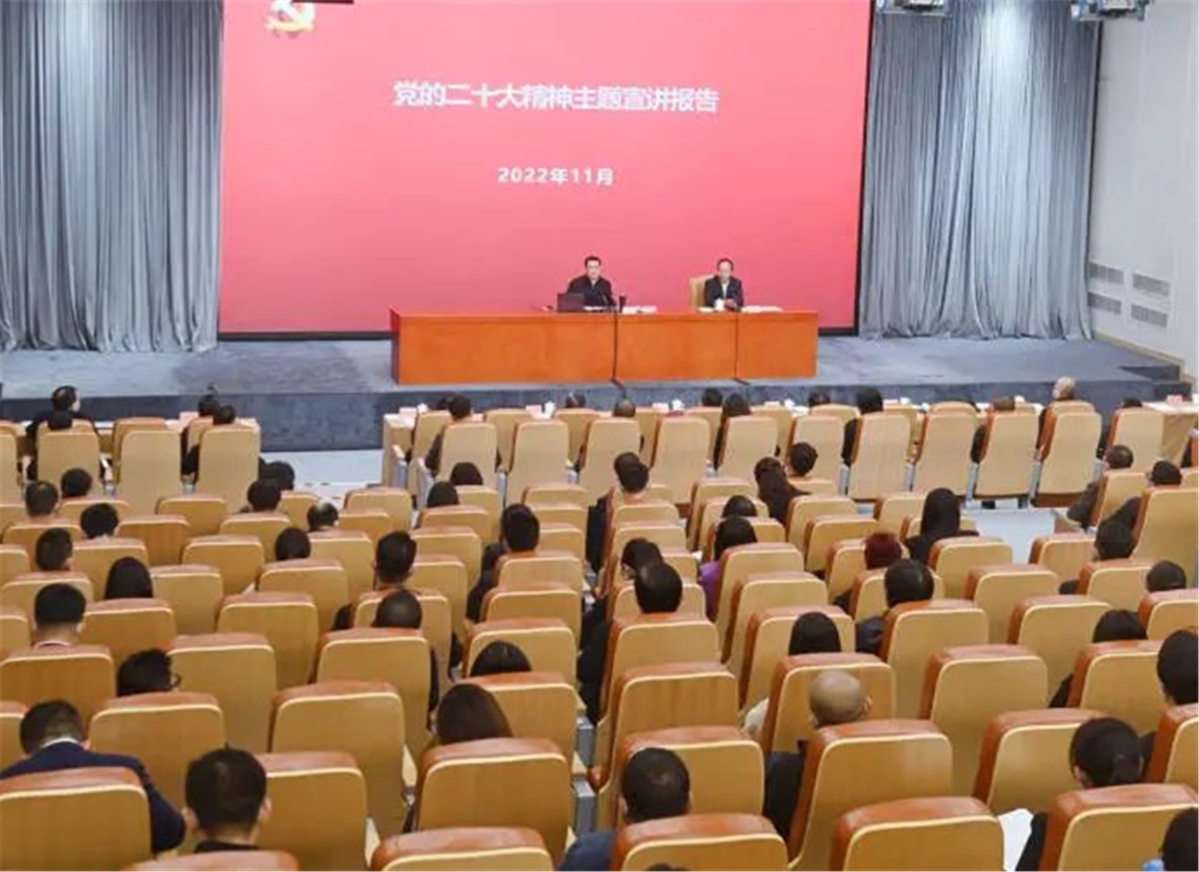 袁家军从过去5年的工作和新时代10年的伟大变革,习近平新时代中国特色社会主义思想实现新跨越、指引新征程,中国式现代化的中国特色、本质要求和重大原则,推进社会主义现代化国家建设的系统部署,党的全面领导和全面从严治党的新形势新要求,发扬斗争精神、增强斗争本领、坚持团结奋斗的使命号召等6个方面,对党的二十大精神的核心要义进行了深入浅出的宣讲和阐释,重点解读了党的二十大关于教育、科技、人才和文化自信自强方面的决策部署,以及省委推动相关部署落地落细的打算。袁家军说,对照党的二十大的新部署,省委将大力推进教育强省建设,深入实施科技创新和人才强省首位战略,加快建设高质量教育体系,建设具有全球影响力的科创高地和创新策源地,打造世界重要人才中心和创新高地战略支点,着力强化现代化先行的基础性、战略性支撑;以推动文化自信自强、建设文化强省为总目标,推行以精神富有为标志的文化发展模式,围绕实现人的现代化开展文化建设,健全以党的理论创新武装全党、教育人民、指导实践工作的省域体系,大力弘扬伟大建党精神和红船精神、浙江精神,实施宋韵文化传世工程,持续擦亮“诗画江南、活力浙江”省域品牌,实施重大文化产业项目带动战略。
