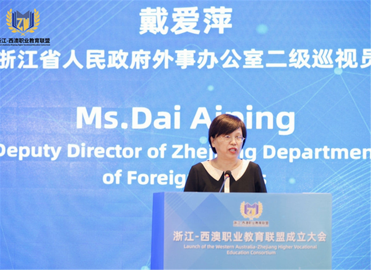 戴爱萍在致辞中指出,今年是浙江省与西澳州结好35周年,在庆祝两省州结好35周年交流会上,浙江省省长王浩、西澳州州长马克·麦高文共同签署了深化友好省州关系协议。浙江-西澳职业教育联盟的成立是中澳教育领域合作的一项新进展,也是浙江省与西澳州友好务实合作的又一新成就。希望各成员单位进一步完善和扩大沟通渠道,推动两省州教育领域的互利合作不断迈向新台阶。