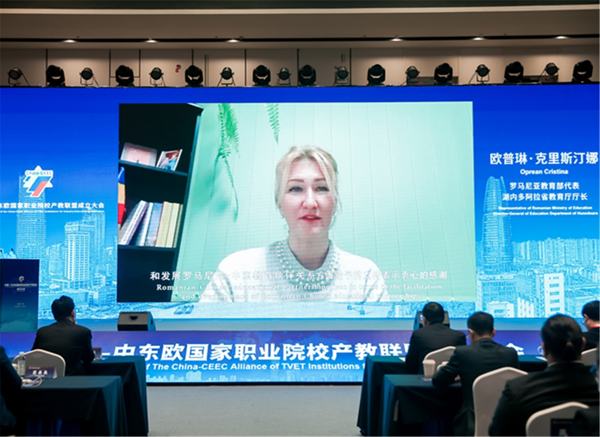 欧普琳•克里斯汀娜在致辞中表示,作为地方教育厅负责人,鼓励和支持罗马尼亚-中国双边项目,热切希望利用与中国机构的紧密联系,提高国际化水平和教育质量。希望联盟的建立,能促进中国和中东欧各国进一步深化职业教育交流与合作,并将合作机会转化为更切实的成果。