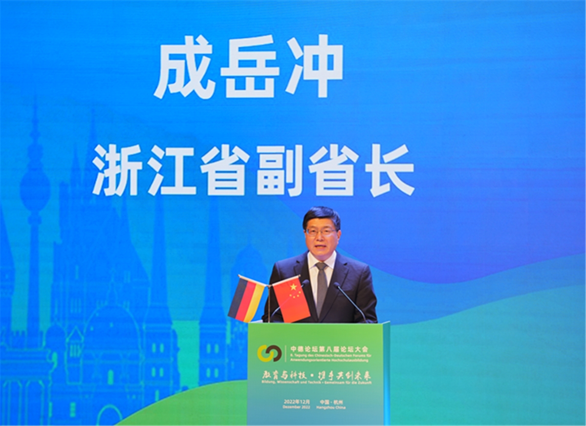成岳冲指出,教育合作是中德关系的重要组成部分,是巩固两国友好关系的重要桥梁。浙江省与德国的教育合作交流起步早、发展快、后劲足,取得了丰硕的成果。双方开展了形式多样、务实有效的交流合作,参与学校覆盖大中小学,总数超过300所。他希望两国与会代表深入探讨、凝聚共识、互学互鉴,继续深化两国在教育领域的合作,不断创新合作方式、提升合作质量,为寻求全球性问题的解决方案贡献“中德学校的共同智慧”。