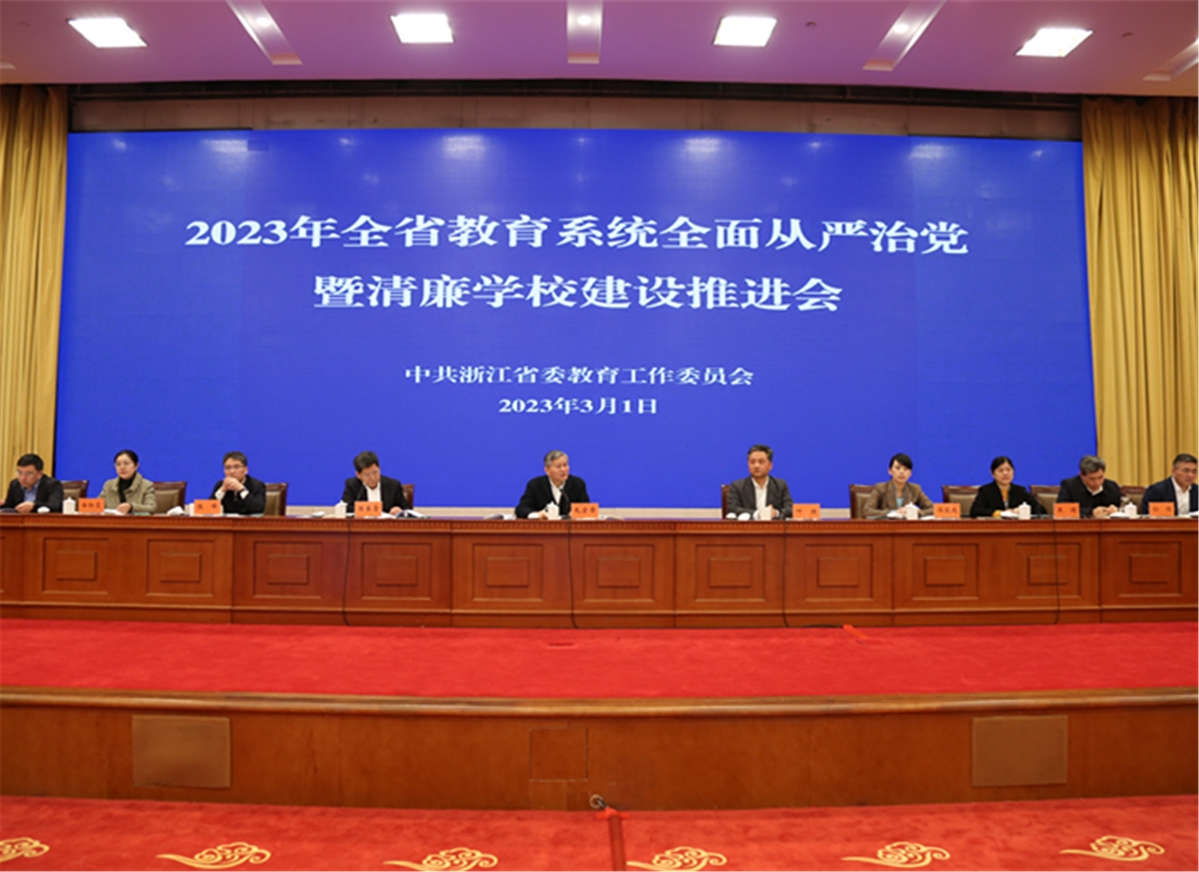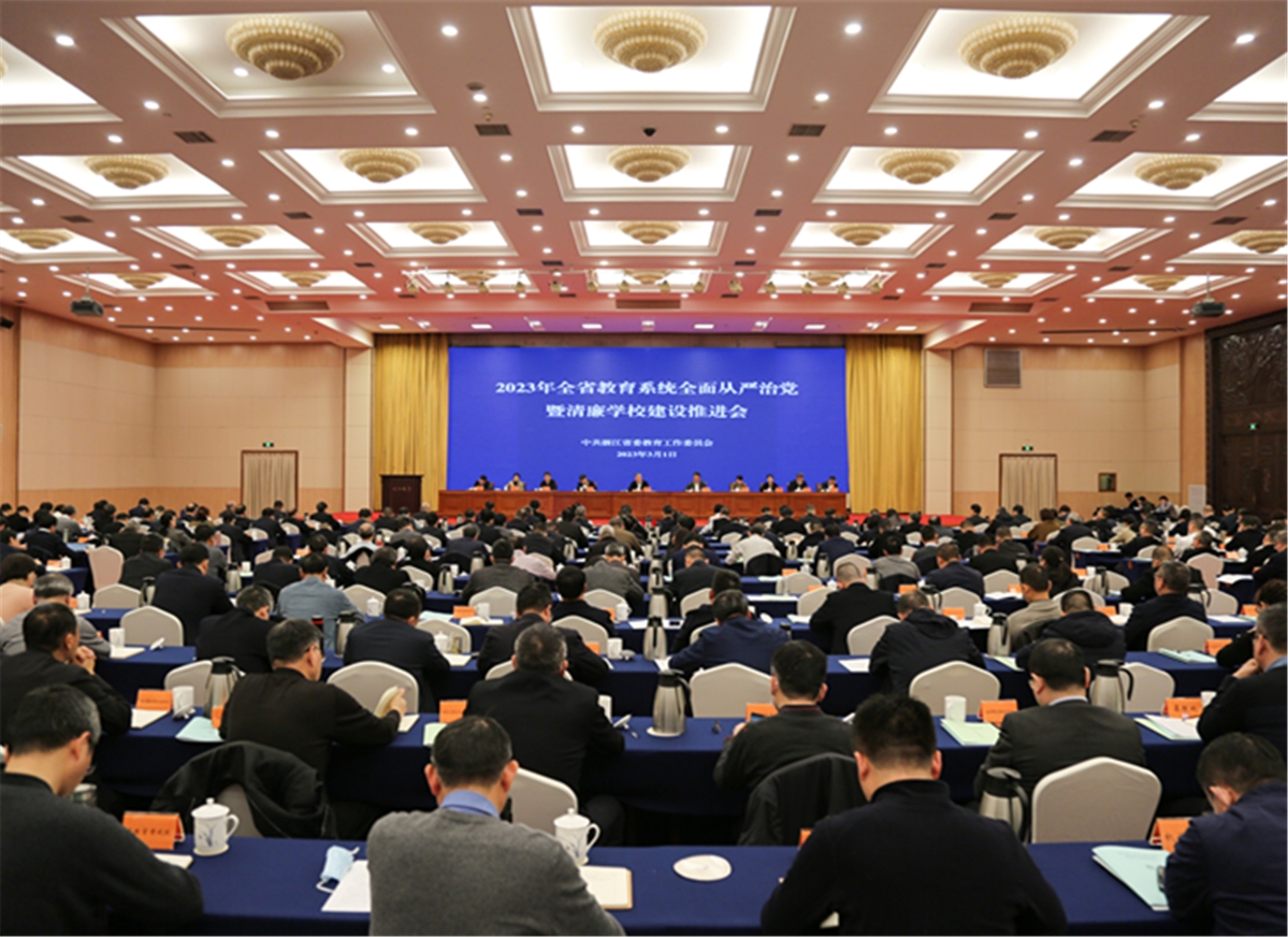 3月1日上午,2023年全省教育系统全面从严治党暨清廉学校建设推进会在杭州召开。会议强调,全省教育系统要深入学习领会习近平总书记关于全面从严治党的重要论述,贯彻落实二十届中央纪委二次全会和省纪委十五届二次全会部署要求,推进教育系统全面从严治党向纵深发展,为建设中国式现代化教育示范省提供坚强保障。省委教育工委副书记,省教育厅党组书记、厅长毛宏芳,省监委委员叶强出席会议并讲话,省委教育工委专职副书记、省教育厅党组副书记陈春雷主持会议,省委教育工委委员、省教育厅党组成员、省纪委省监委驻省教育厅(省委教育工委)纪检监察组组长王健部署纪检监察工作。