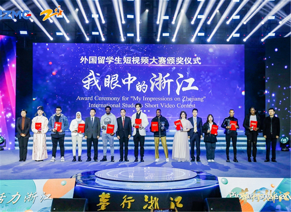 本次展演现场还举行了“我眼中的浙江”短视频大赛颁奖仪式。外国留学生们以自己的视角、国际化语言,讲述他们邂逅诗画江南、活力浙江的美丽故事,真实、立体、全面地反映了“美丽浙江”建设发展面貌,展示浙江生态之美、人文之美、和谐之美。最终,大赛评出一等奖3个、二等奖6个、三等奖10个。