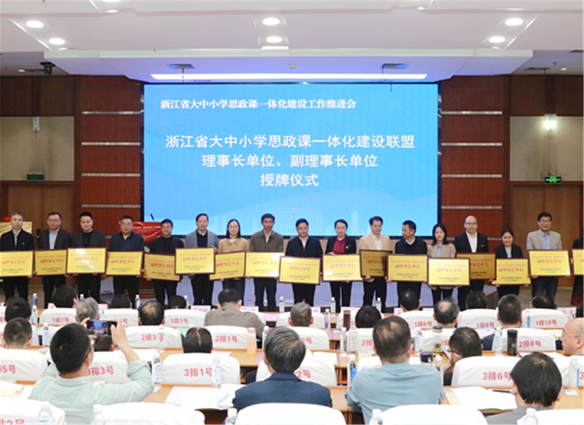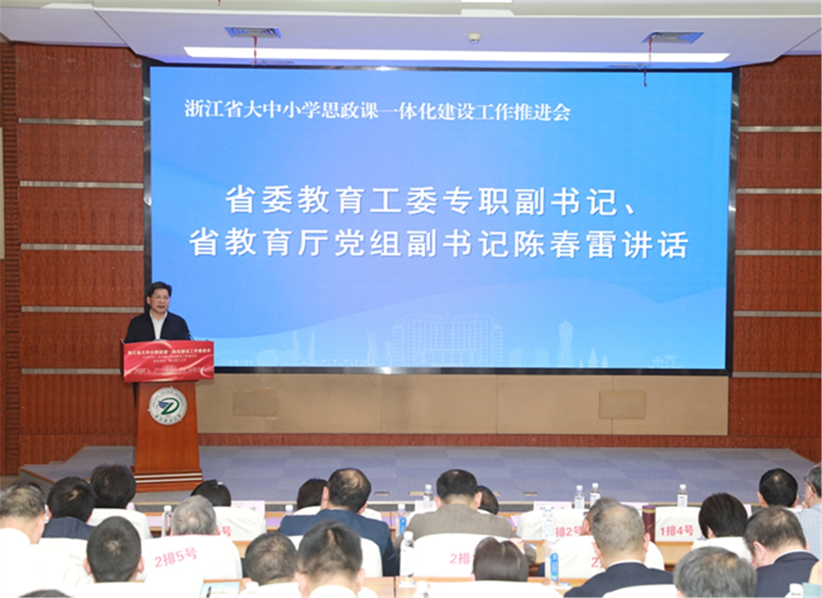 陈春雷指出,推进大中小学思政课一体化建设对于落实立德树人根本任务,教育引导广大学生坚定“四个自信”、努力成为堪当民族复兴重任的时代新人,具有不可替代的作用,全省各大中小学要切实把大中小学思政课一体化建设摆在重要位置,以成立省大中小学思政课一体化建设联盟为契机,加快推进思政课一体化建设,扎实推动新时代思政工作高质量发展。他要求,要突出工作重点,结合不同学段学生心理特点和教育规律办好思政课,建好专职教师队伍,打造好新平台。要加强工作协同,强化机制建设、课题研究和总结交流,推动校际协作、教师协作、校地协作,统筹推进大中小学思政课一体化建设。要擦亮工作品牌,打造特色教材、特色课程和特色实践活动,形成具有浙江辨识度的大中小学思政课一体化建设品牌。