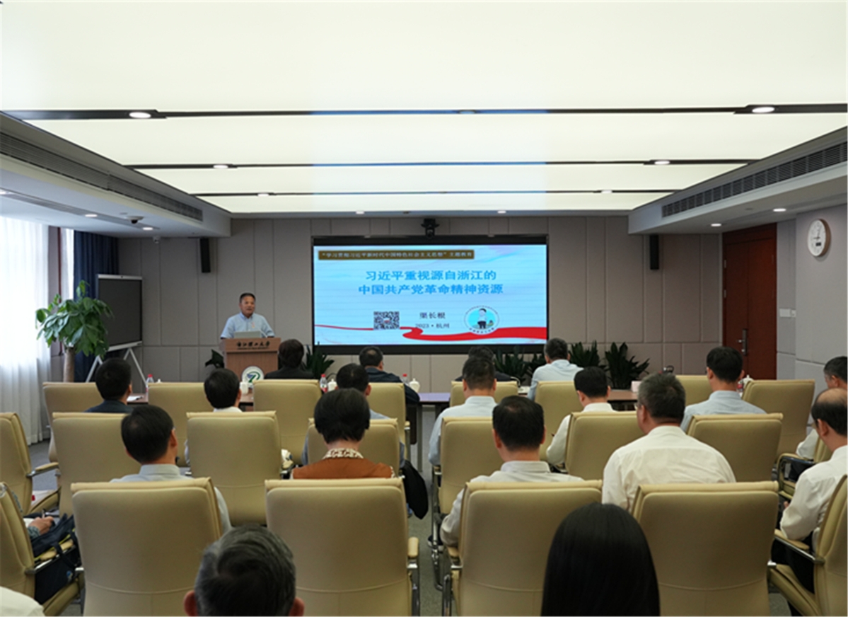 本次活动特邀浙江理工大学红色文化研究院院长、教授渠长根为全体党员干部讲授专题党课。渠长根重点围绕“中国共产党革命精神的一般认识”“伟大的建党精神与革命精神谱系”“努力讲好源自浙江的革命精神故事”等三个方面进行了多维度、深层次的讲解,全面解读红船精神与伟大建党精神的关系、中国共产党革命精神谱系的基本构成、源自浙江的中国共产党革命精神资源与中国共产党革命精神谱系的逻辑关系,以及源自浙江的中国共产党革命精神资源与习近平总书记的深厚渊源。整场党课主题鲜明、内容丰富、逻辑清晰,具有很强的思想性、理论性和指导性。课后,党员干部们还结合学习成果和工作实际进行了深入交流研讨。