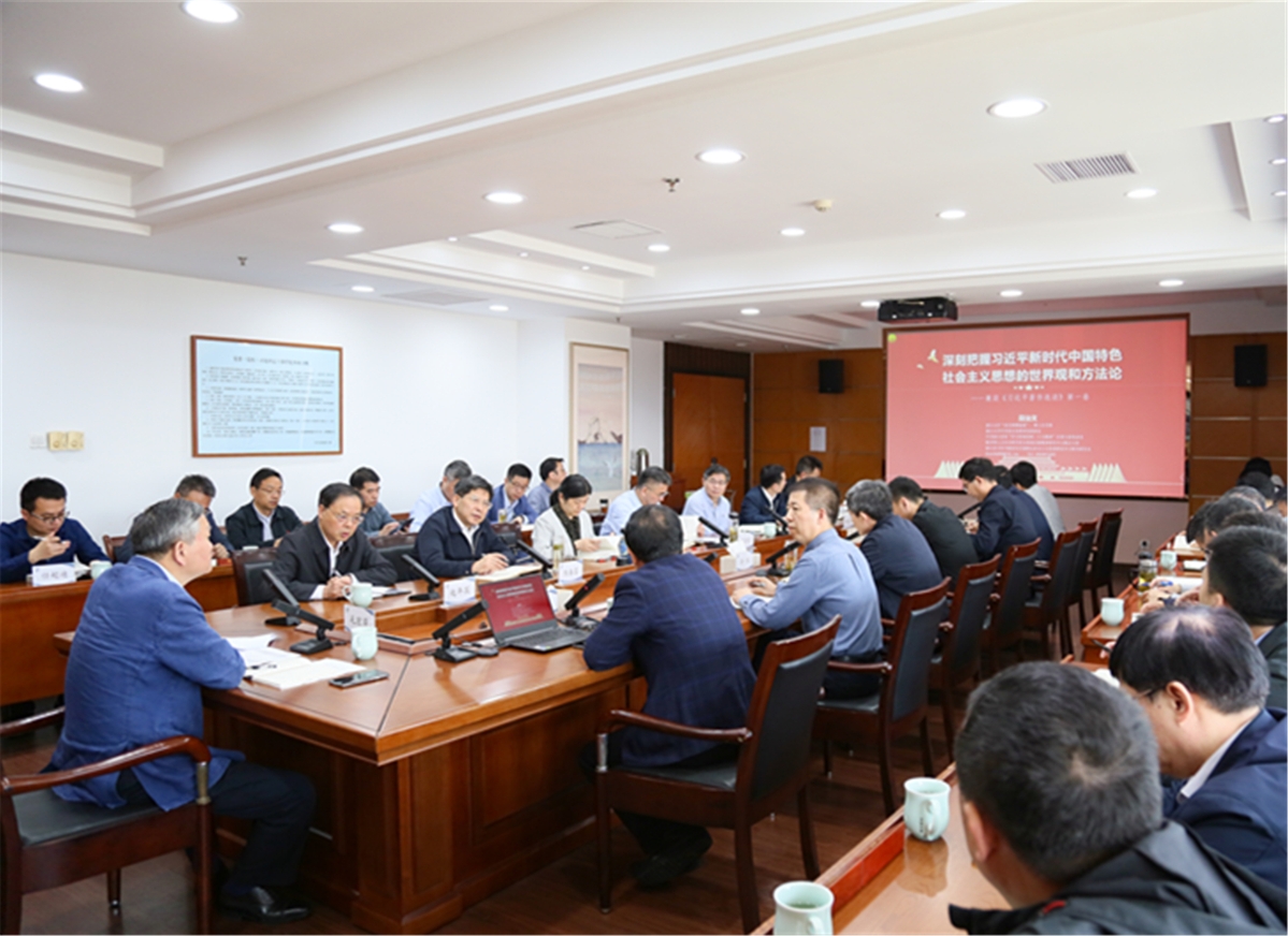 讲座中,段治文教授围绕深刻把握习近平新时代中国特色社会主义思想的世界观和方法论,重点从“人民至上、自信自立的坚定信念”“登高望远、守正创新的理论品格”“问题导向、重点突出的战略要求”“把握机遇、掌握主动的精神风范”“系统谋划、胸怀天下的战略思维”等五个方面,对《习近平著作选读》进行阐述解读。