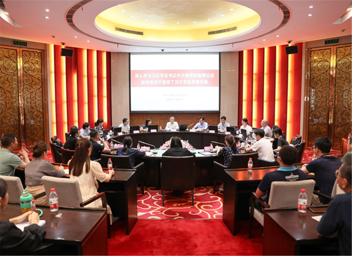 根据学习贯彻习近平新时代中国特色社会主义思想主题教育部署要求,7月24日下午,省委教育工委副书记,省教育厅党组书记、厅长毛宏芳以“深入学习习近平总书记关于教育的重要论述 加快推动宁波诺丁汉大学高质量发展”为题,为宁波诺丁汉大学的党员教师讲授主题教育专题党课。