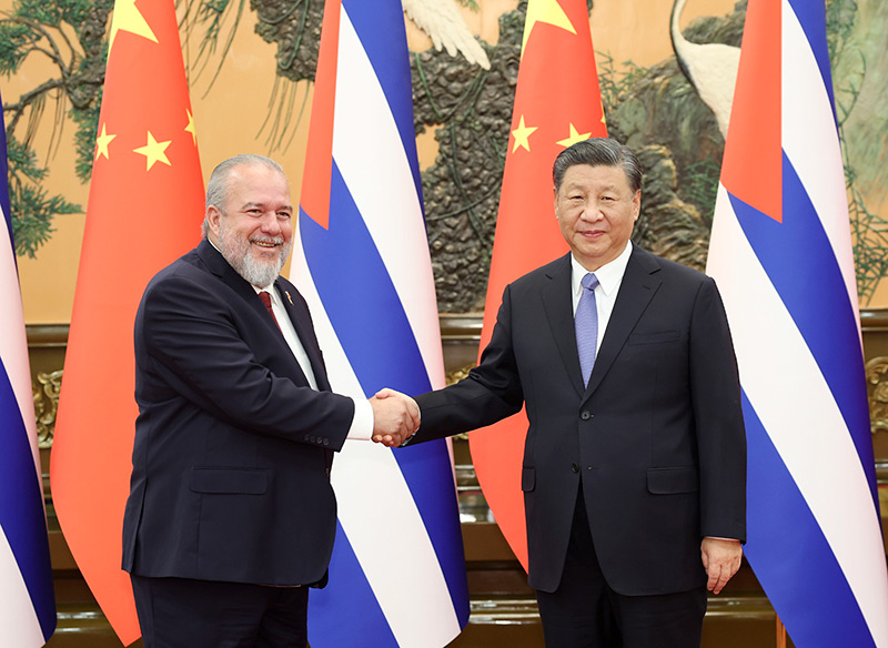 习近平强调,我在第三届“一带一路”国际合作高峰论坛上宣布了支持高质量共建“一带一路”的八项行动,欢迎古方积极对接,特别是在农业、旅游、卫生、科技、信息通信等领域深挖合作潜力,推动两国合作走深走实。希望古方继续用好中国国际进口博览会等重要平台,推动更多特色产品进入中国市场。今年9月,古巴成功举办“77国集团和中国”峰会,为推动发展中国家团结合作作出重要贡献。中方愿同古方一道,继续携手维护发展中国家的主权、安全、发展利益。