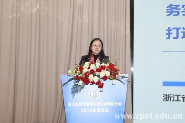 中国教育国际交流协会常务理事宗瓦,中国教育国际交流协会港澳台办主任金雷,省教育厅国际合作与交流处处长、省教育国际交流协会秘书长蓝晶晶,省教育国际交流协会高职分会会长、浙江机电职业技术学院校长贺星岳及省内40多所高职院校领导和嘉宾参加会议。