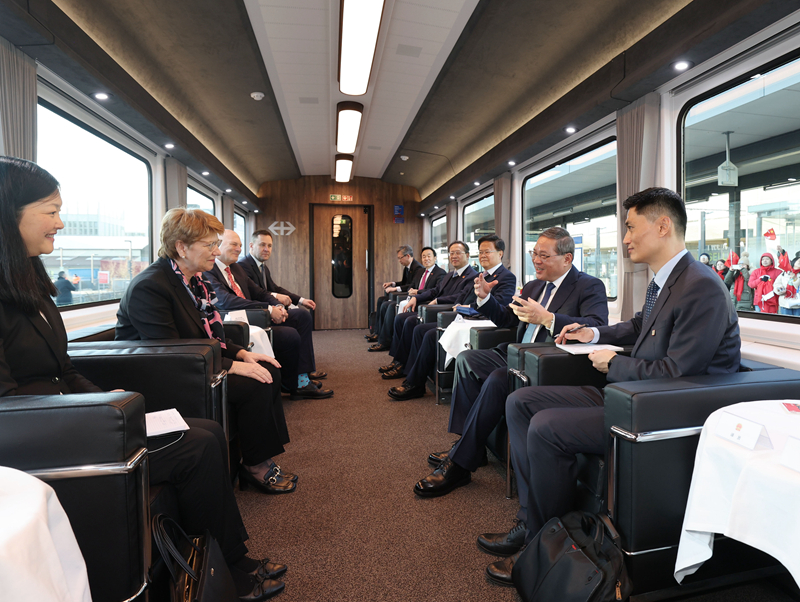 当地时间1月14日下午,国务院总理李强与瑞士联邦主席阿姆赫德共同乘专列自苏黎世前往瑞士首都伯尔尼,一路在轻松友好的氛围中坦诚交流。