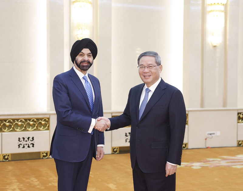 国务院总理李强3月25日上午在人民大会堂会见世界银行行长彭安杰。