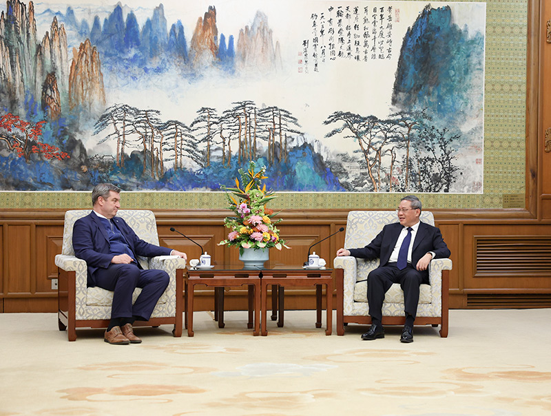 国务院总理李强3月27日下午在钓鱼台国宾馆会见德国巴伐利亚州州长索德尔。