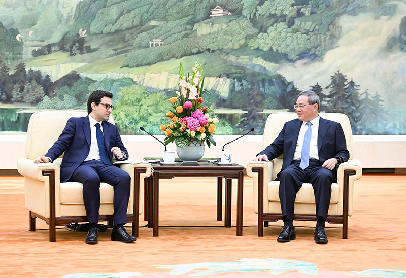 国务院总理李强4月1日下午在人民大会堂会见法国外长塞茹尔内。