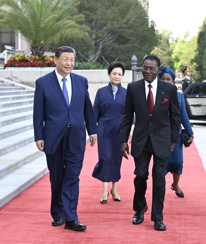 习近平指出,中国同赤道几内亚是肝胆相照的好朋友、好伙伴,高水平政治互信是两国关系的最鲜明特征。建交半个多世纪以来,双方始终守望相助、风雨同舟,在涉及彼此核心利益和重大关切问题上坚定相互支持,成为中国同非洲国家真诚友好、携手发展的生动写照。新形势下,巩固好、发展好中国同赤道几内亚关系符合两国和两国人民的根本利益和共同期待。中方坚定支持赤道几内亚维护国家主权独立、反对外来干涉、自主探索本国发展道路,愿同赤道几内亚以提升全面战略合作伙伴关系为契机,进一步密切各领域、各层级友好往来,深入开展改革发展、脱贫攻坚等领域经验交流,为两国传统友好注入持久动力。