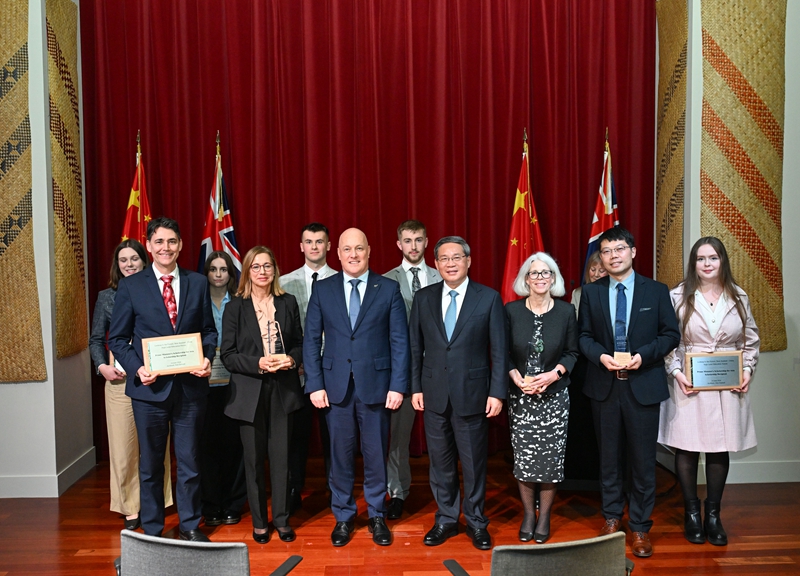 闭幕式上,李强向新西兰孔子学院、孔子课堂学生代表赠送中文书籍,拉克森向总理亚洲奖学金、“三兄弟合作项目”基金获得者颁发获奖证书。