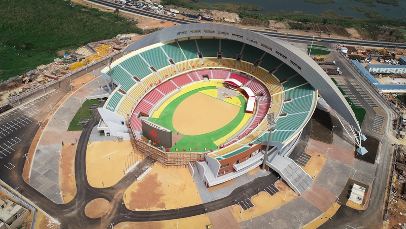 这是2018年7月18日在塞内加尔首都达喀尔航拍的中国援建的塞内加尔竞技摔跤场。新华社记者 吕帅 摄