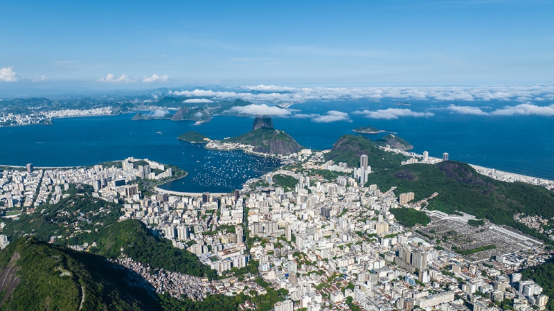 这是2023年3月1日拍摄的巴西里约热内卢市区和瓜纳巴拉湾(无人机照片)。新华社记者 王天聪 摄