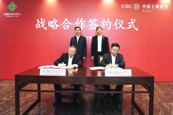 2月24日,浙江省供销社与工商银行浙江省分行签署战略合作协议。省供销社党委书记、理事会主任陈利江,工商银行浙江省分行党委书记、行长田耕出席并围绕深化合作进行座谈。省供销社党委委员、理事会副主任董益彪,工商银行浙江省分行党委委员、副行长聂晶代表双方签约。