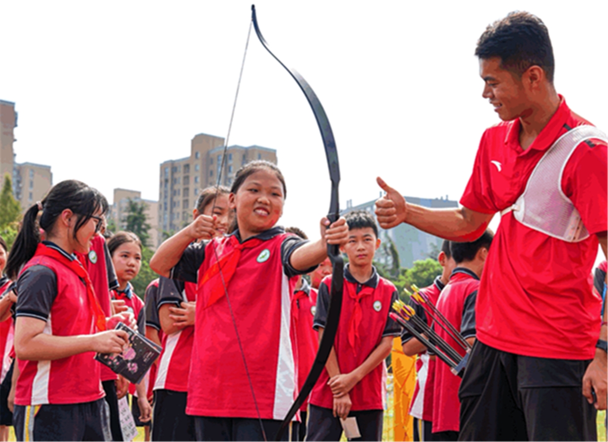 启动仪式结束后,杨倩和学生一起跳绳、打篮球。“参加户外活动,多看一看大自然,也能起到缓解眼睛疲劳的作用。”杨倩说,希望学生们能踊跃投身体育运动,培养一项热爱的体育项目。