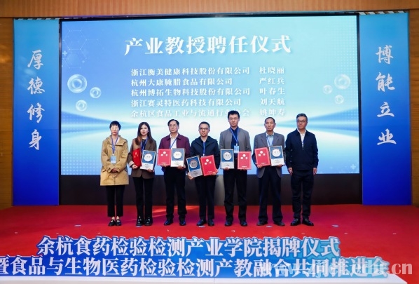 校地政企协五方代表共同为“余杭食药检验检测产业学院”揭牌。