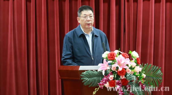 陈德泉向与会嘉宾表示欢迎,并简要介绍了学校在培养国际化人才和国际产教融合方面的经验与成效。他指出,此次与杭州市钱塘区当代国际化研究中心共建金砖工匠学院,正是要以“教育链-产业链-创新链”三链融合为核心,打造一个覆盖金砖国家的国际合作网络,希望学院能聚焦金砖地区产业发展、企业出海困境、金砖人文交流等领域,创新人才培养体系、做实跨境企业出海服务、深化职教研究与人文交流,培养兼具专业技能与国际视野的复合型工匠,为中外企业提供全方位的国际化服务,助力企业在金砖市场实现更稳健发展。