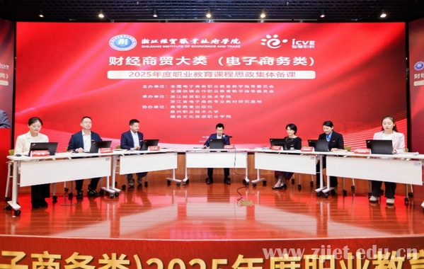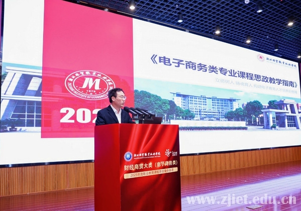 10月31日,由全国电子商务职业教育教学指导委员会(以下简称“全国电商行指委”)与全国供销合作职业教育教学指导委员会(以下简称“全国供销行指委”)联合主办,浙江经贸职业技术学院承办的2025年职业教育财经商贸大类(电子商务类)专业课程思政集体备课活动在学校会议中心顺利举行。本次活动以“守三农初心,铸电商匠魂:乡村振兴战略下的专业价值重构”为主题,聚焦财经商贸大类(电子商务类)专业与供销行业院校相关专业的课程思政教学探索与实践。活动采用“线下主会场+线上直播”相结合的方式开展,汇聚了来自全国多所职业院校的领导、财经商贸领域专家、职业教育工作者及师生代表,共同探讨电子商务类专业课程思政的建设路径。浙江省教育厅职成教处处长陈达,全国供销合作职业教育教学指导委员会副主任、学校党委书记劳赐铭,学校校长陈德泉出席活动并致辞。学校党委委员、副校长林锋主持活动。