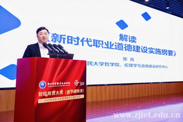 本次活动特邀教育部青年长江学者、中国人民大学哲学院副院长、伦理学与道德建设研究中心主任张霄,围绕《新时代职业道德建设实施纲要》(以下简称《纲要》)开展深入解读与专题领学。张霄系统梳理了我国职业道德建设的发展脉络,廓清了公民道德的内涵,明确提出以《纲要》为核心主线,构建彰显职业教育“职业性”特征的课程思政体系,为电子商务类专业推进课程思政创新提供了重要的理论指引与实践思路。