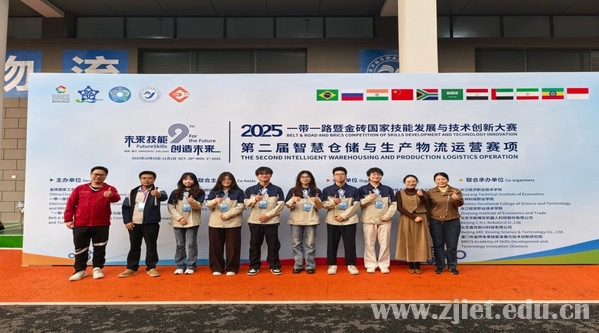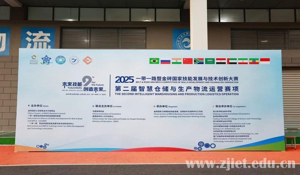 10月29日至11月1日,由金砖国家工商理事会中方理事会、“一带一路”暨金砖国家技能发展国际联盟联合主办,浙江经济职业技术学院、台州科技职业学院、浙江经贸职业技术学院等承办的“‘一带一路’暨金砖国家技能发展与技术创新大赛第二届智慧仓储与生产物流运营赛项”在杭圆满落幕。来自四川、辽宁、内蒙古、浙江等全国多省区的高职院校代表队齐聚一堂,在竞技舞台上展开巅峰对决。学校两支参赛队伍凭借扎实的专业功底、默契的团队协作与从容的临场应变,一举斩获一等奖和二等奖。