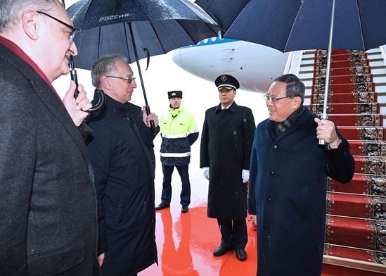 11月17日上午,应俄罗斯总理米舒斯京邀请,国务院总理李强乘包机离开北京,赴俄罗斯出席上海合作组织成员国政府首脑(总理)理事会第二十四次会议。当地时间11月17日中午,李强乘包机抵达莫斯科伏努科沃机场。俄罗斯政府代表和中国驻俄罗斯大使张汉晖到机场迎接。新华社记者 饶爱民 摄